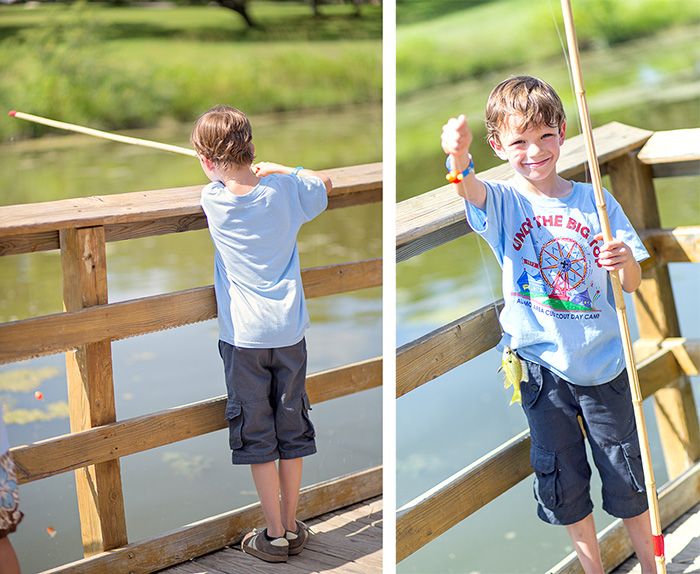 There was also a big wooden boat that the boys could stand on and go fishing. Mckay was the only one who caught something...probably cause his mama knows how to fish and might have helped :)
